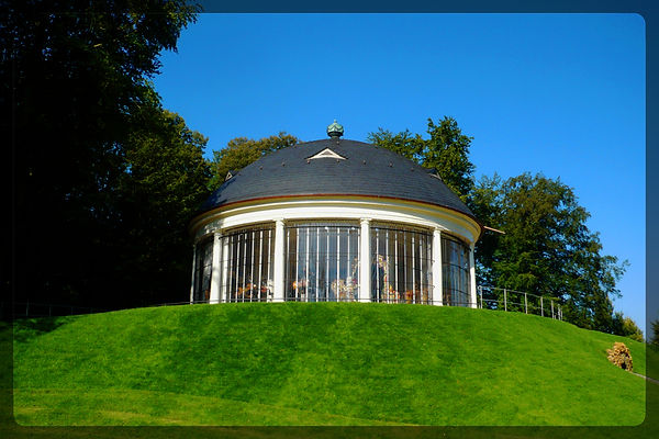 Staatspark Hanau-Wilhelmsbad: Ältestes Karussell der Welt (Ansicht vom linken Aufweg).